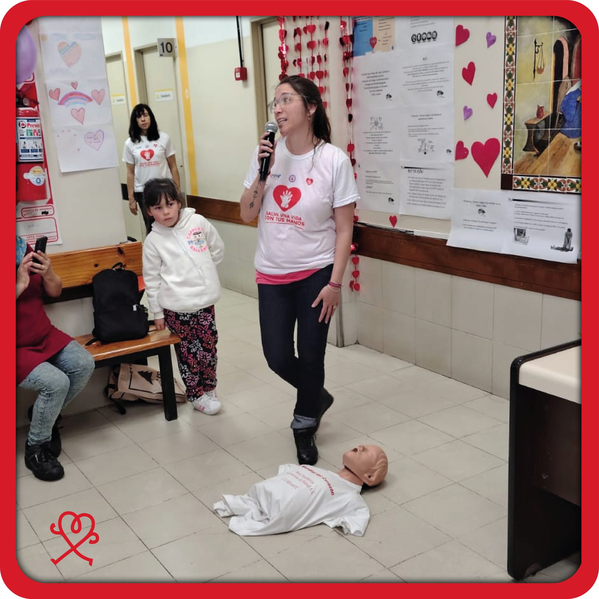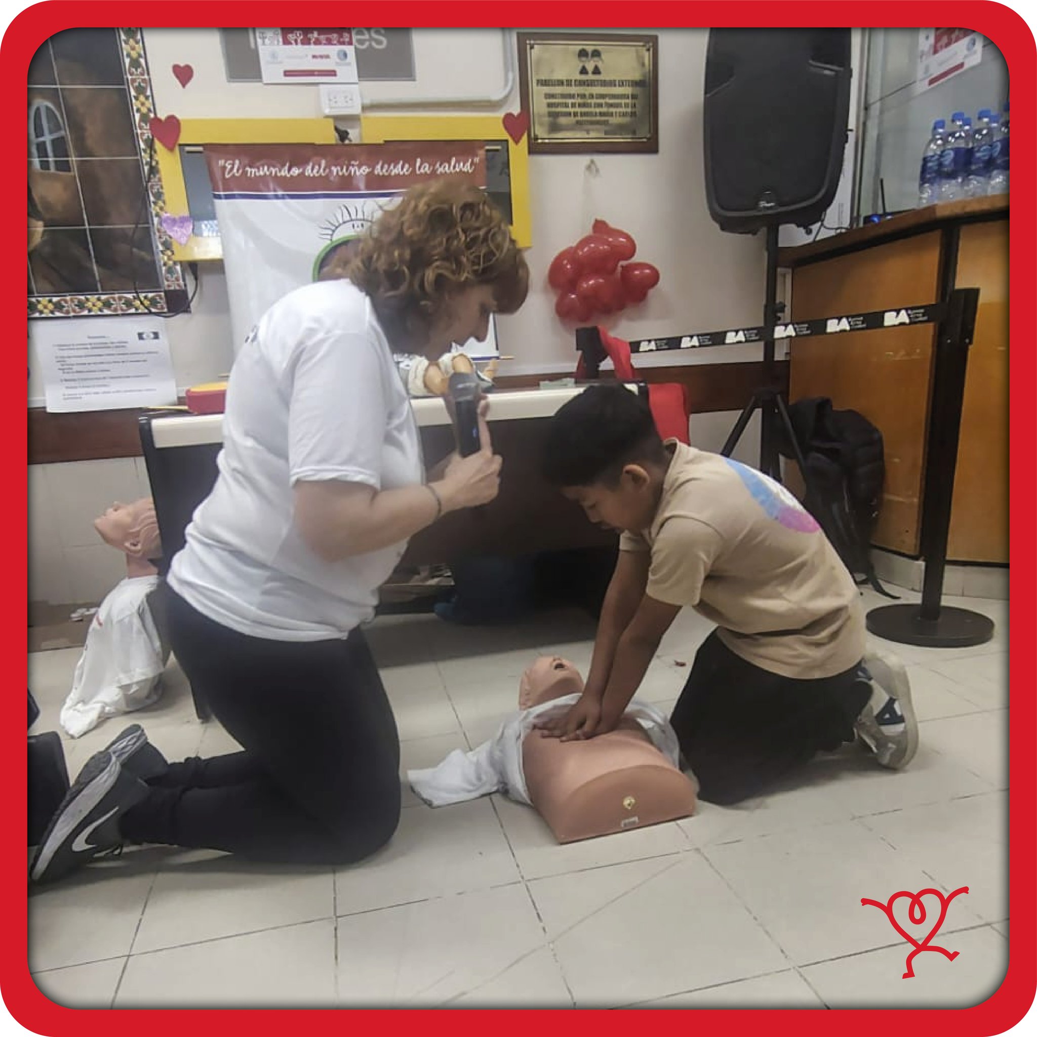 El lunes 29 de septiembre se realizó en los consultorios externos de Cardiología del Hospital de Niños Ricardo Gutiérrez una clase abierta y gratuita de Reanimación Cardiopulmonar (RCP) para conmemorar el Día Mundial del Corazón 2025, “No te saltes el ritmo” (Don’t miss a beat).